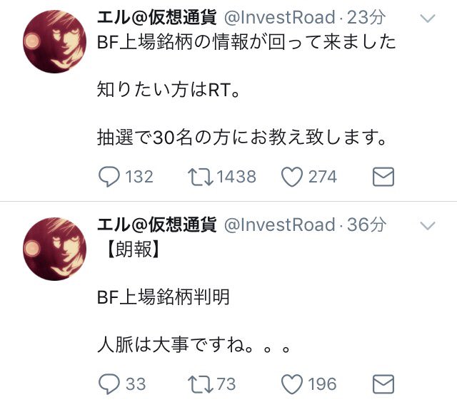 Lさんがbf次期上場コインの情報入手、限定公開するとツイート